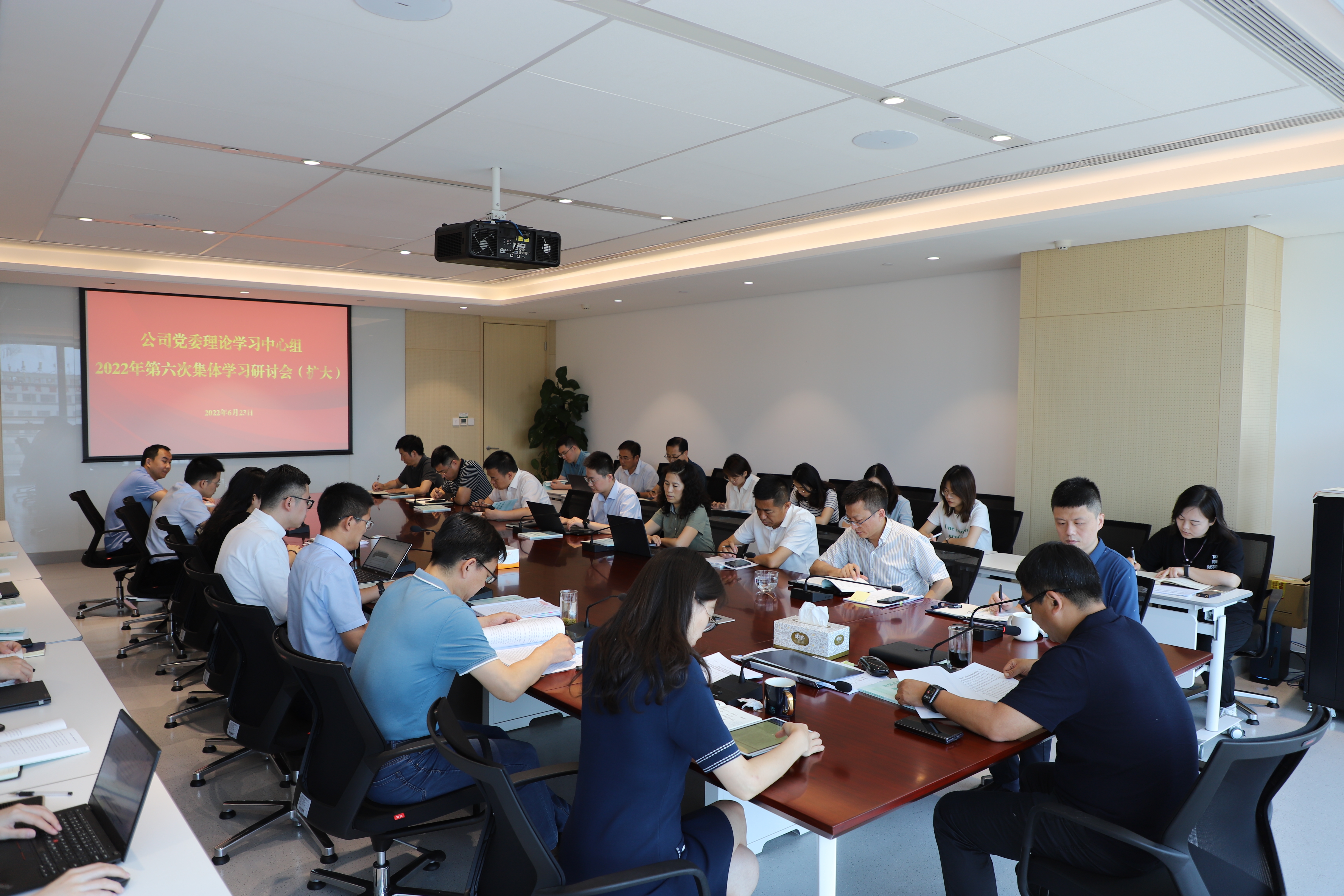 公司领导班子全体成员参加会议,各子公司领导班子成员、各部门负责人、各党支部书记、公司本部全体党员列席学习。