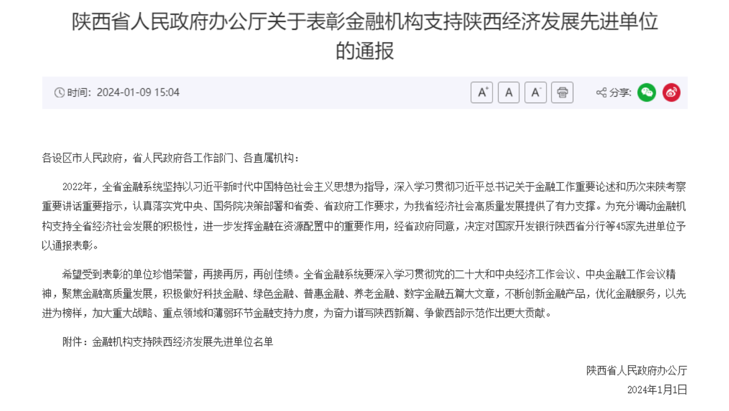 近日,陕西省人民政府办公厅发布了《关于表彰金融机构支持陕西经济发展先进单位的通报》,对全省金融系统45家先进单位予以通报表彰。BETWAY必威荣获“金融机构支持陕西经济发展先进单位”称号。公司成立以来,坚守国有资本运营公司定位,着力谋战略、建体系...