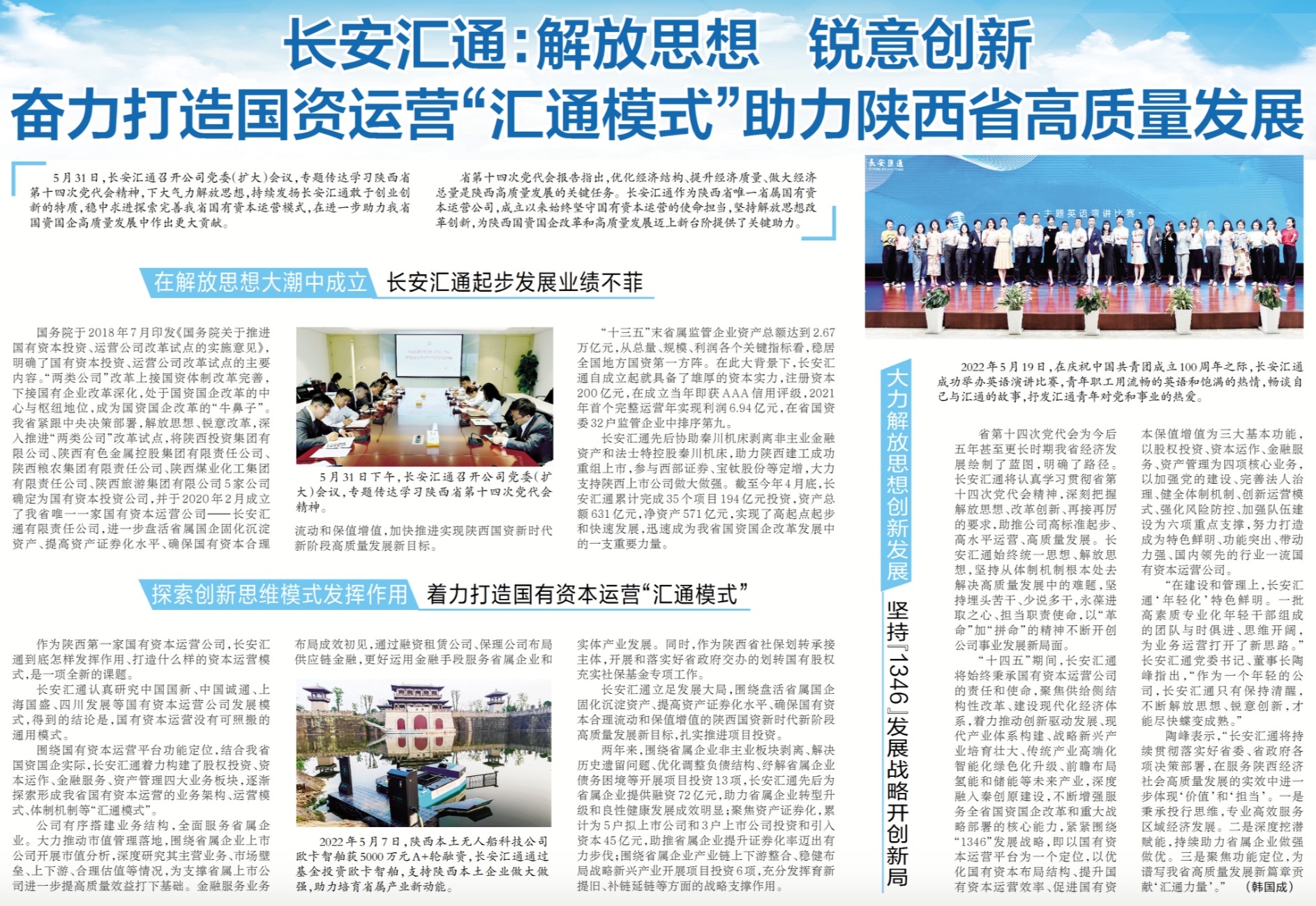 【陕西日报】BETWAY必威:解放思想 锐意创新,奋力打造国资运营“BETWAY必威模式”助力陕西高质量发展